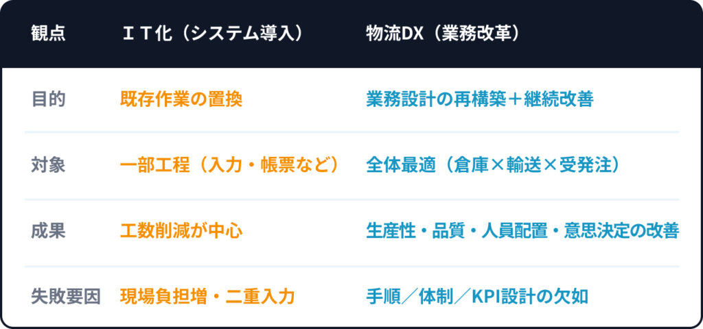 ・物流DXとシステム導入/IT化の違い