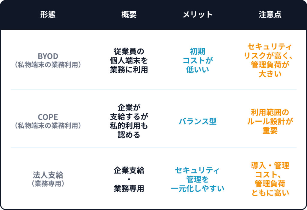 ※COPEは、会社が端末を所有しつつ、一定範囲の私的利用も認める方式です。